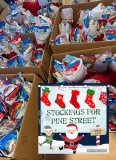 Supplies for those in need, awareness materials to educate and save lives, and of our annual Stockings for Pine Street project, which brings hope and dignity to individuals in recovery during the holidays.